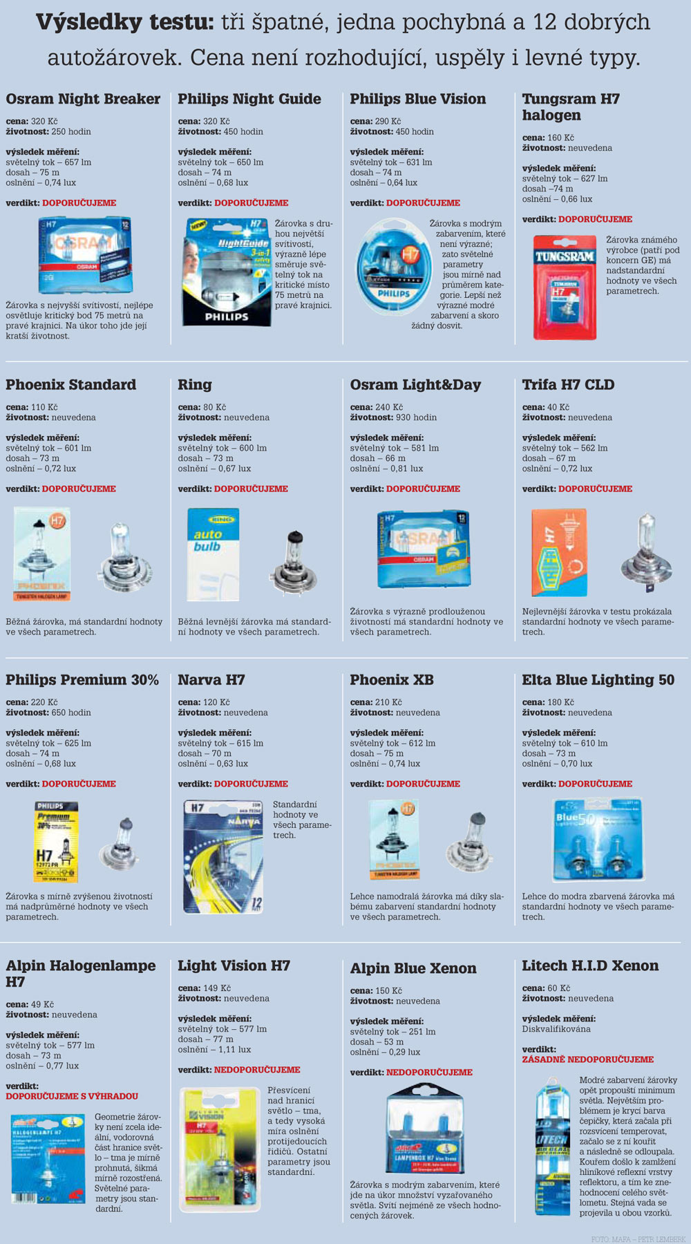 Gandalf,třeba budeš překvapený,že dobře vybrané žárovky doslova za pár pětek(tuším +-60Kč/ks svítí daleko lépe,než spousta značkových za 500,-KČ/ks).Testy ,tabulky,svítivost,dosah paprsku i s cenami žárovek......tady kdysi dával tuším Josef nebo Vipe a byly více než překvapující,zvláště pro lidi,kteří si myslí,že s cenou automaticky roste kvalita/svítivost.Možná to tady někdo najde,nechce se mi to hledat.Byla to tabulka i s obrázky.