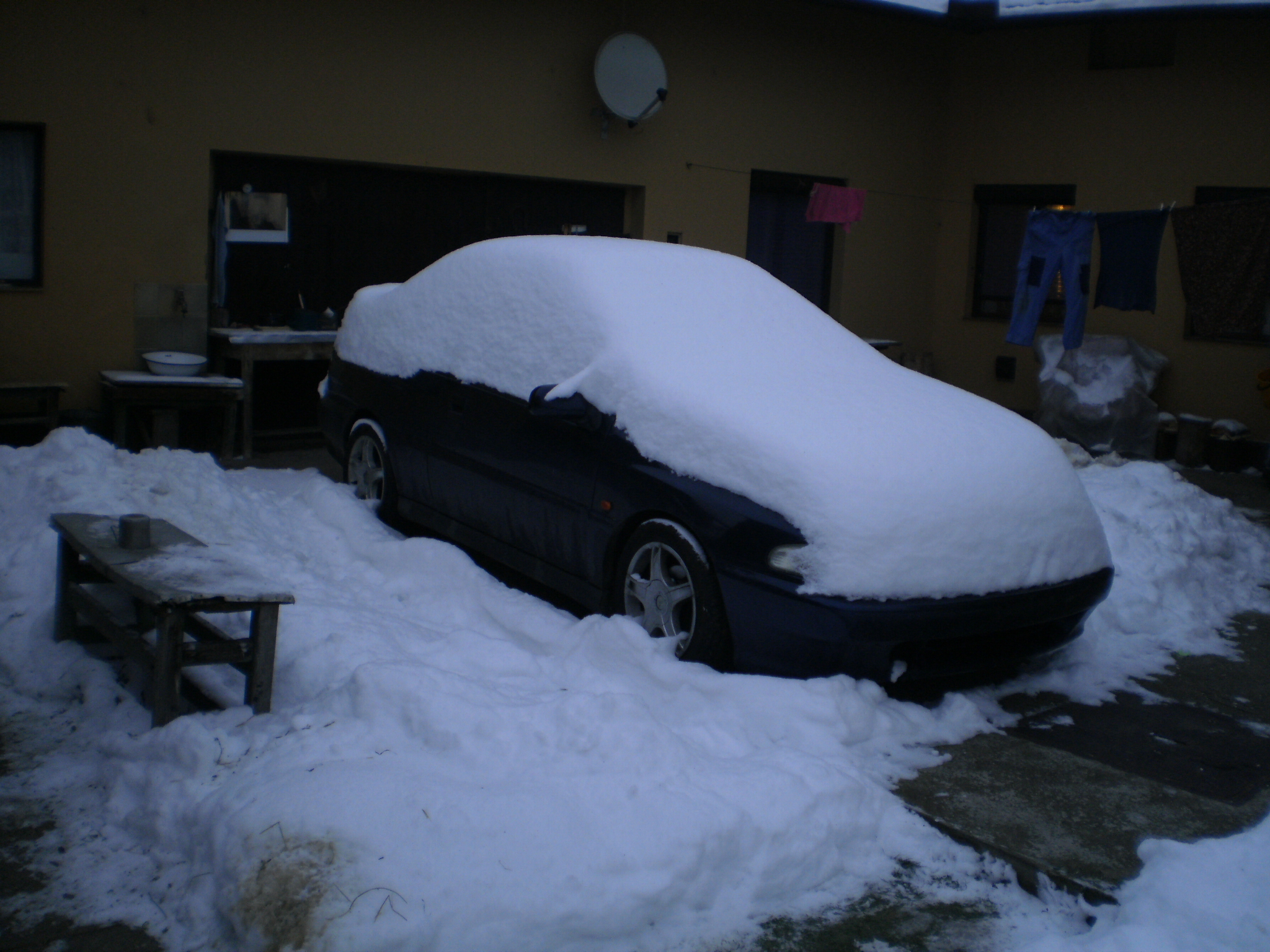 Tak Modrák spinká pod sněhovou peřinou... taky mi včera přišly penízky od pojišťovny, krásnejch 8144,- , tudíž mi Generali zaplatila celýho modráka II skoro i s cestou do Chebu
